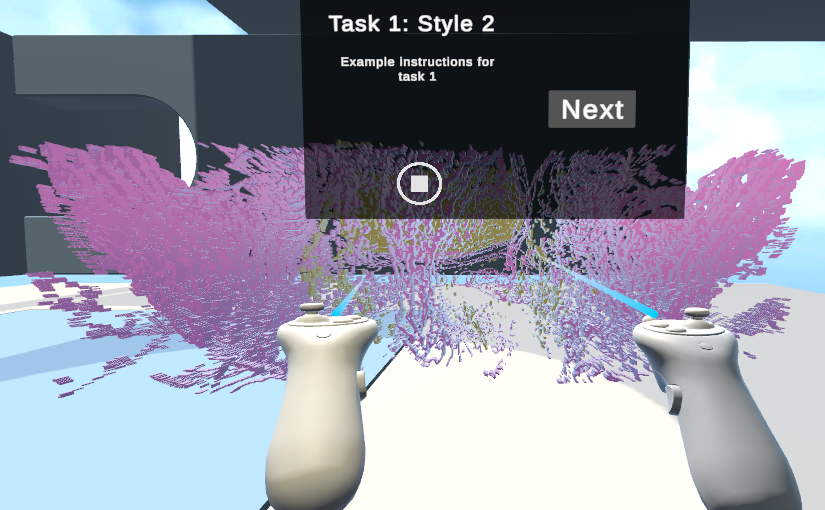 My role was to create the VR and Desktop environments, creating the interaction methods (rotation, translation, zoom etc.) for desktop set up the UI and task flow for the study, create the data logging system to track user and render positions/rotations, import our custom lego-stippling rendering method into the project and make sure all of the systems worked as intended. Everything that you see in the images that is not the render itself was put together by me. Additionally, I was involved with designing the tasks, choosing what rendering styles to use and identifying good data sets to use. For all of those tasks I read the literature surrounding the topic and became well versed in the different VR interaction methods and different rendering techniques that have been tried in the space before with their benefits and drawbacks. Overall, I have learned a lot about working with VR environments, 3D rendering, handling medical data, setting up usable UIs and working in game/physics engines in general.